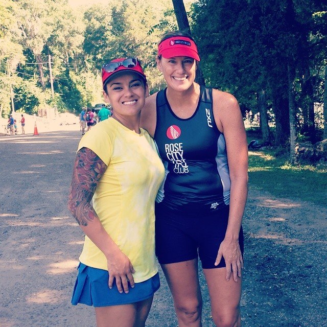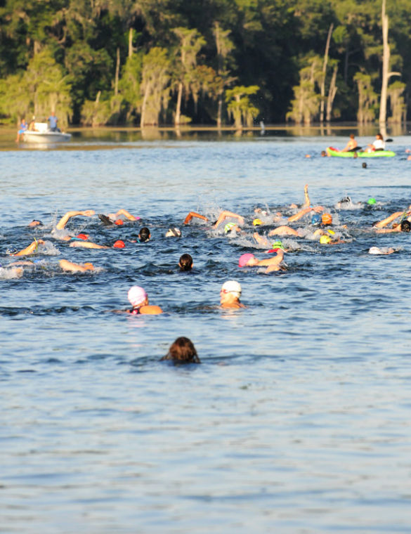 A few minutes before the start, I inched my wetsuit up my sticky, sweaty body and eased my way into the cool, spring fed water. The swim start is just beyond two concrete docks, which means a treading water kind of start. It is a straight out and back swim, which I think makes the swim look even longer. After the men started, we made our way out to the docks to wait for our start. Having panicked on my own swims and knowing exactly what this swim was like, I will always help someone if they give me that look….. you know the look….. the look of, “I’d really like you to stay, but I don’t want you to give up your race..”