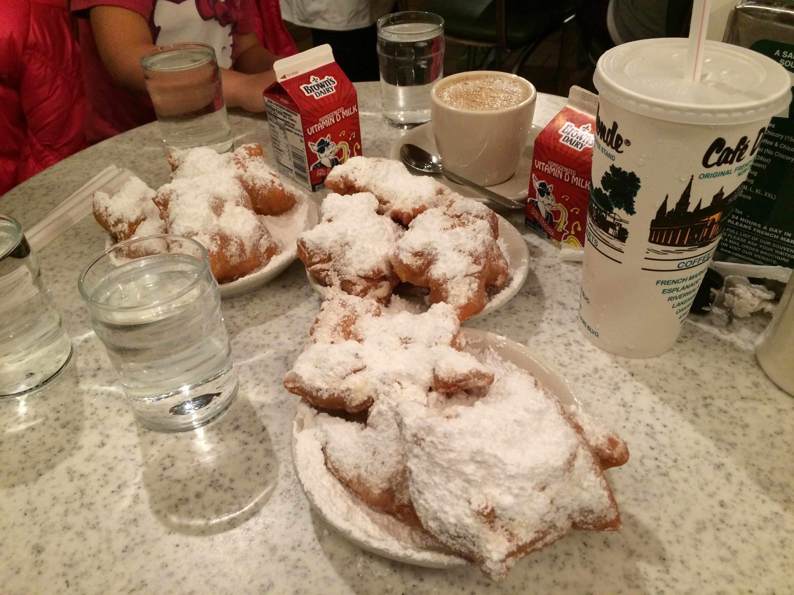 After the Expo we decided to pass on a healthy dinner and visit the world famous Cafe Du Monde for beignets and coffee. My oldest munchkin fell asleep in the cafe from the long day of traveling but the powdered sugar donuts shifted my four-year-old into a whole new gear. She was dancing out of the cafe.