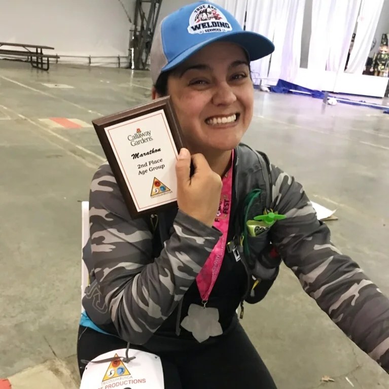 In mile 25 my sweet friend joined me on the course to help me bring it home. I cried when I saw her. It was at the moment I realized I was going to have one of my best finish times and she was there to help me celebrate. She was trying to help me pick up the pace bit and even walking small portions I completed mile 25 in 12:18. Thankfully, the last .2 miles was mostly downhill, making the finish so sweet! I finished in 4:48:23 and placed 2nd in my age group.